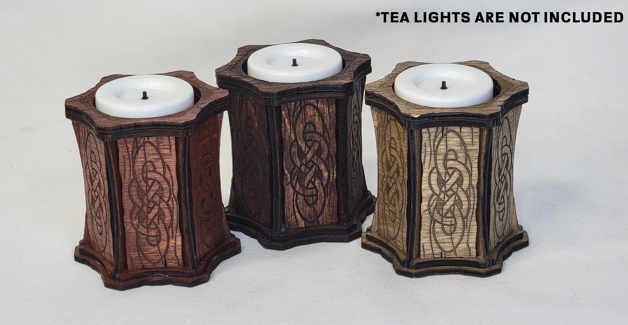Celtic Inspired Wooden Tea Light Holders - Enchanting Home Decor