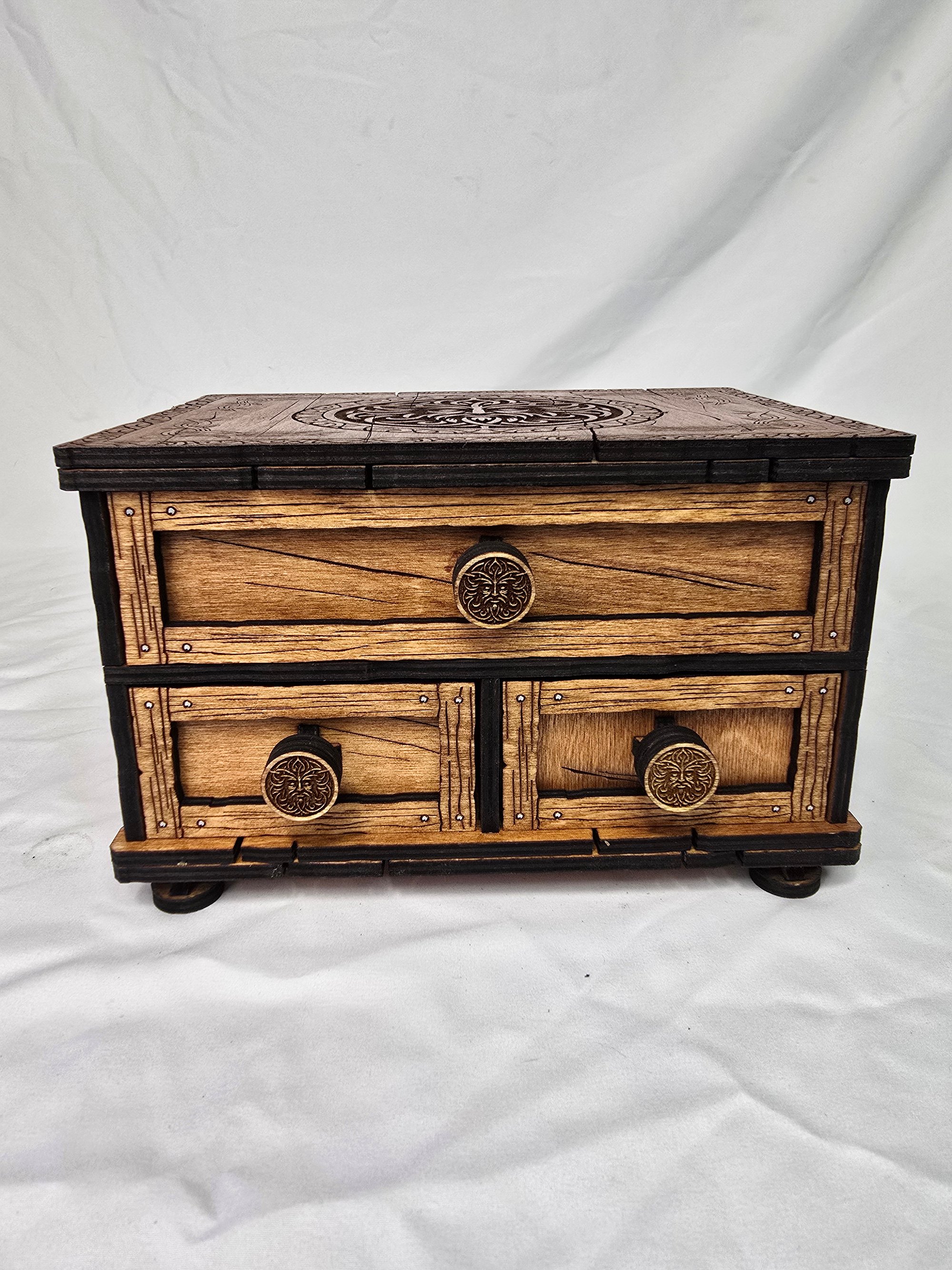Wood Tarot Card Box with Three Drawer | Storage Chest for Runes, Amulets, Candles & Keepsakes